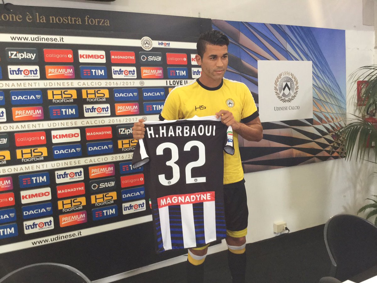 Outro atacante apresentado essa semana foi o tunisiano Hamdi Harboaoui chega a seu maior clube europeu o ex atacante do Lovreken da Belgica por sinal foi o primeiro reforço anunciado para a nova temporada , ele chega com a missão de substituir o ídolo Antonio Di Natale recém aposentado , revelado pelo Esperance de Tunis em 2003 , ele chegou em 2008 para o futebol belga , la ele atuou no Mouscron, RSC Vise , Leuven e por ultimo o Lovreken , pela equipe do Lovreken foram duas passagens onde fez 133 jogos e marcou 63 gols , o jogador passou de 2014 a 2016 ele atuou no Qatar SC onde fez 4 jogos e marcou nenhum gol. O jogador tem passaporte belga.